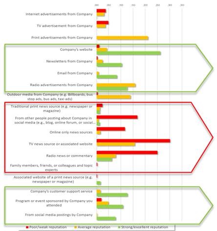 For companies with a strong reputation, controlled communications via a business’ website, newsletters, customer support service or sponsored events have the strongest impact on CSR perception.