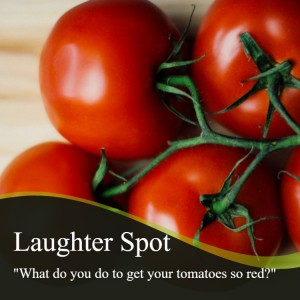 The woman asked the gentlemen, “What do you do to get your tomatoes so red?”