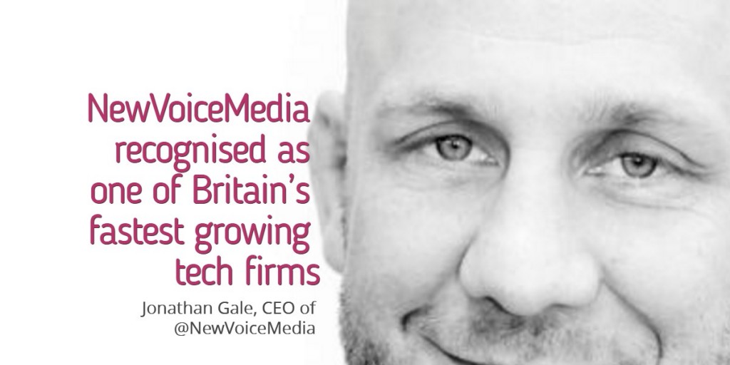 “We are honoured to be included in this prestigious list of Britain’s fastest growing tech companies”, commented Jonathan Gale, CEO of @NewVoiceMedia “Our global pure cloud contact centre and inside sales platform with its market-leading CRM integration capabilities is transforming the customer service experience and sales performance of organisations worldwide. Together with our market position, momentum, and a multi-billion dollar market opportunity, we are extremely well positioned as we look forward to continuing our growth trajectory while helping our global customer base grow their businesses with improved efficiency”.