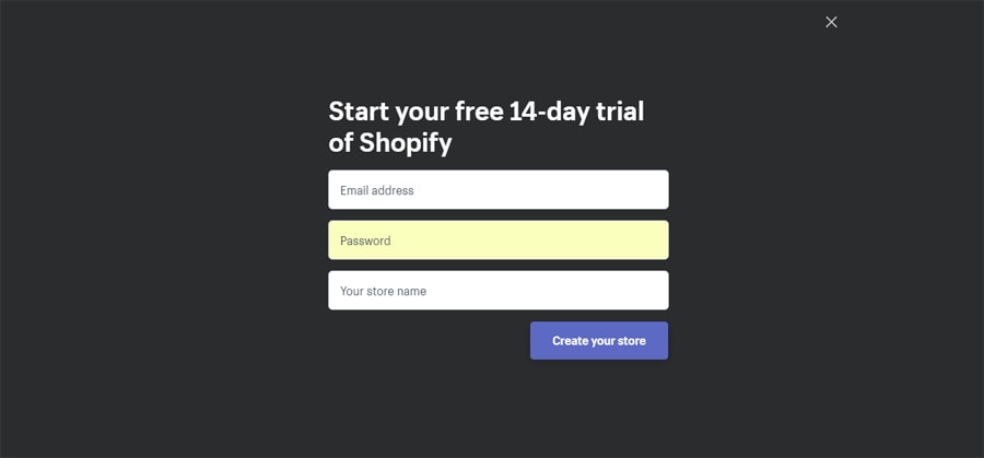 - As soon as you click, a window will ask you to put information such email address, password, and a store name. As you can see in the following screenshot.
