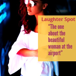 He decides because she’s wearing a uniform, she’s probably an off-duty flight attendant.
