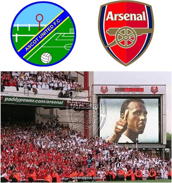 The two teams will mix players with two captains picking their players one by one and one team will play in Arsenal tops. Good old fashioned ‘Jumpers for Goalposts’ meets cutting edge amateur football. Ascot United has a floodlit pitch a small stand and a very hospitable club house. Food and drink will be available throughout the game with Free Pies for the boys playing after the game.
