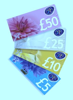 - National Garden Gift Vouchers are available in five denominations – £50, £25, £10, £5 and £1
