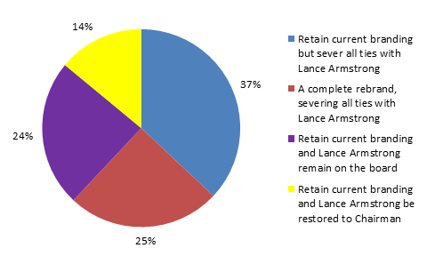Less than a quarter (24%) believe the actual course of action taken by Livestrong – keeping the current branding and retaining Armstrong on the board in a background role – is the right course.