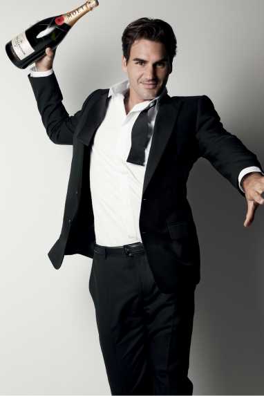 The producer of top-shelf bubbly is added to a multi-million-dollar lineup of strictly blue-chip Federer clients including Nike, Wilson racquets, Mercedes-Benz, Gillette, Rolex watches, Credit Suisse, Lindt chocolates and National Suisse among others.