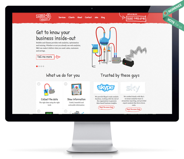 Traditionally positioned alongside web analytics agencies, Stubble & Glasses goes that one step further. Its focus is on turning complex numbers into actionable insights to lead brand strategy, support web designers and empower marketers, and then acting on those insights.