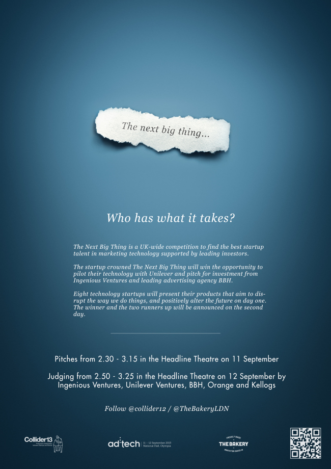 It’s your last chance to apply for our competition with The Bakery at ad:tech London. For full details, head on over to here, or apply at: http://www.f6s.com/adtech-thenextbigthing