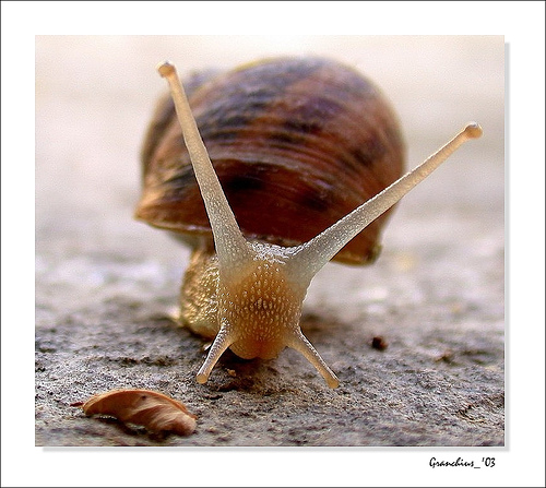 He ran down the beach all the way to his apartment. He ran up the stairs of his apartment. He was in such a hurry that when he got to the top of the stairs, he dropped the bucket of snails. There were snails all down the stairs. The door opened just then, with a very angry wife standing in the door way wondering where he’s been all this time. He looked at the snails all down the steps, then he looked at her, then back at the snails and said: “Come on guys, we’re almost there!”