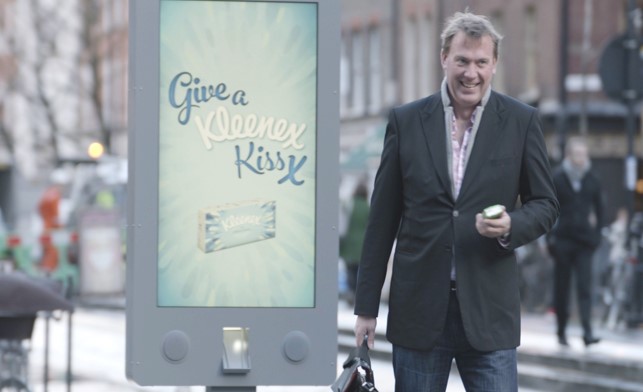 The campaign will launch on 2 February with a nine-week television run. Seven adverts will feature different people sharing kissed tissues tagged with intimate and uplifting messages in a gesture the brand is labeling ‘Kleenex Kisses’.