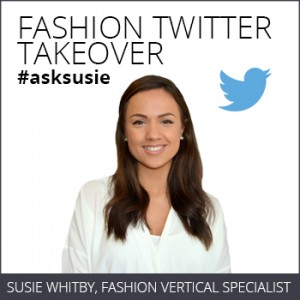 Affiliate Window write … Following the success from our previous Twitter Takeovers for travel, traffic acquisition and mobile, on Friday 15th May our Fashion Vertical Specialist, Susie Whitby will be on hand from 11-12 to answer any, and all of your fashion questions.