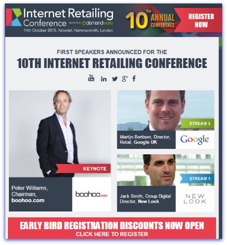 Events : First speakers announced for the 10th Internet Retailing Conference – Google UK, boohoo.com and New Look.