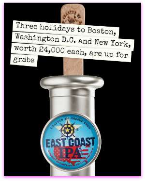 Drinkers of Greene King’s East Coast IPA, the latest addition to the Greene King IPA family, will be in with the chance to win one of three stateside trips this summer. Three holidays to Boston, Washington D.C. and New York, worth £4,000 each, are up for grabs after the competition launched on Greene King’s East Coast IPA, IPA’s Facebook page at the end of June.