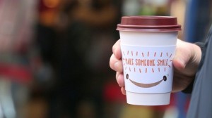 If you get a #makesomeonesmile coffee sleeve, give it to a friend (or a complete stranger) for a free coffee pic.twitter.com/u5DwSRHfEB