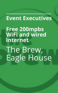 The Brew Eagle House was designed to meet the needs of the 21st Century event organiser, who (when asked an open-ended question in a survey by ticketing platform: Eventbrite) cited ‘head and shoulders above every other request’ free, quality WiFi as the one service that would most improve their experience of working with a venue.*