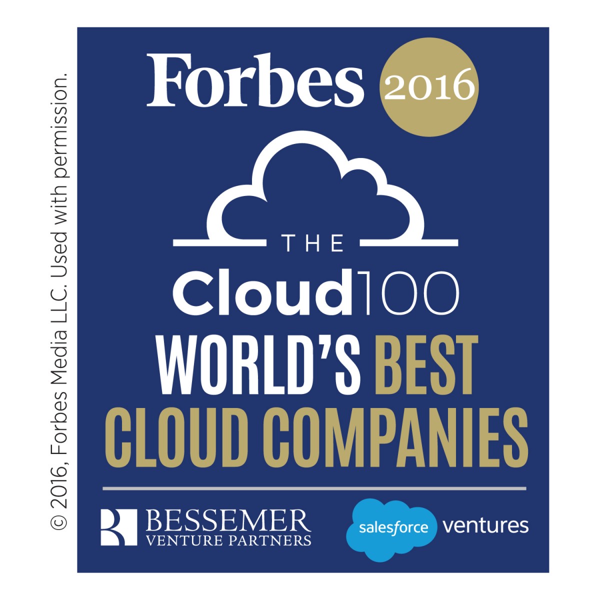 Every company named to the Forbes 2016 Cloud 100 is recognised in print and online by Forbes, and Forbes’ partners Bessemer Venture Partners and Salesforce Ventures. The companies also receive physical awards and digital badges signifying their inclusion on this exclusive list, as well as an invitation to the celebratory Cloud 100 Awards Dinner, hosted in San Francisco by Forbes, Bessemer Venture Partners and Salesforce Ventures.