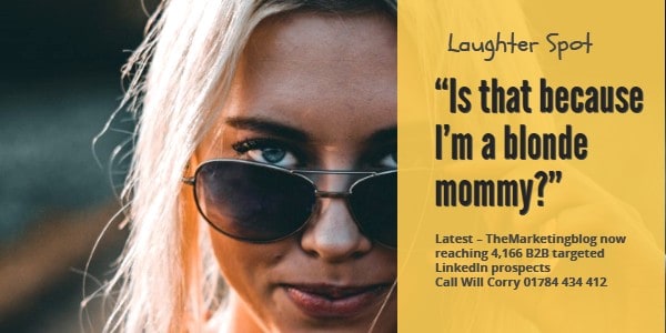 The mother responds, “Very good honey.” The blonde asks, “Is that because I’m a blonde mommy?” And the mother responds, “Yes dear.”