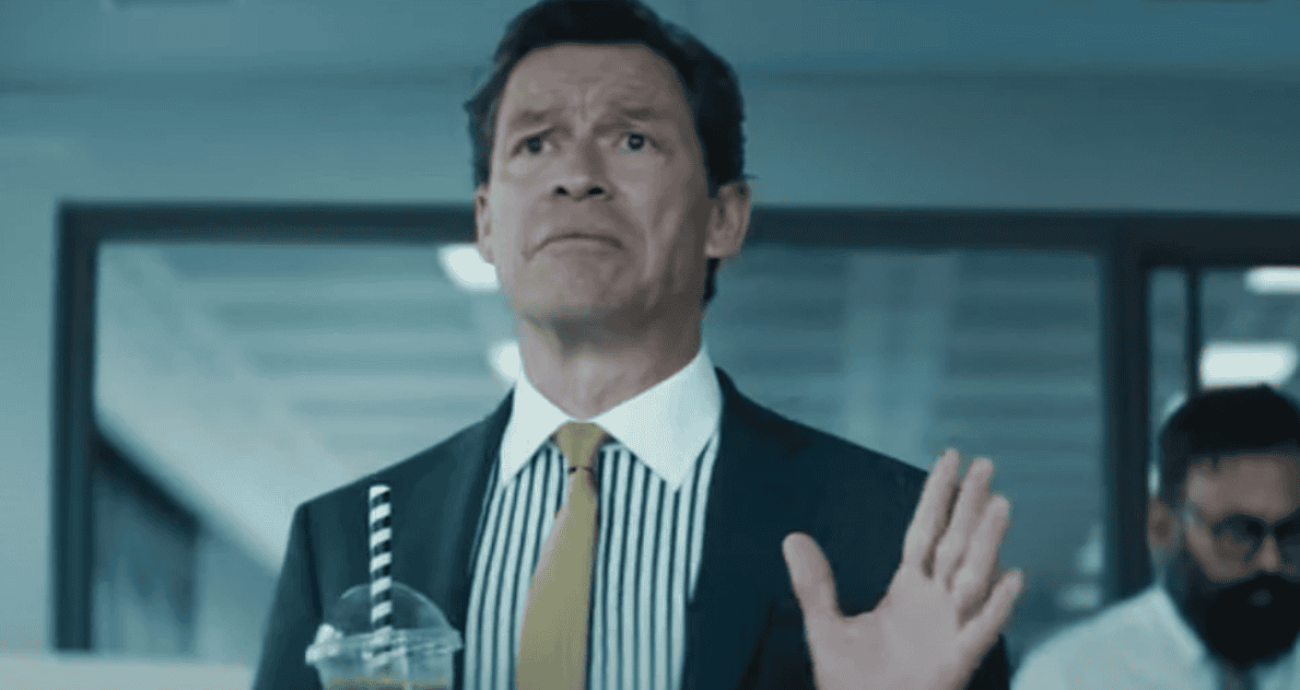 - Hugo (Dominic West): pompous CEO of the fictional A.N.Y Bank — exaggerated to represent the worst of big bank culture